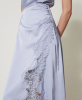 Gonna longuette in raso e pizzo