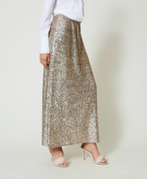 Gonna lunga made in Italy in full paillettes con elastico nascosto in vita, fodera in tulle, linea morbida. Questo articolo fa parte della selezione 'Archive', ispirata dai capi più iconici e amati delle collezioni Twinset.