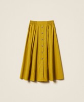 Gonna lunga in popeline di cotone stretch con bottoni décor davanti, elastico ai fianchi e sul retro in vita, tasche laterali, linea svasata.