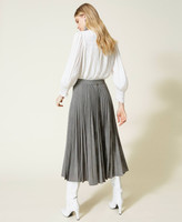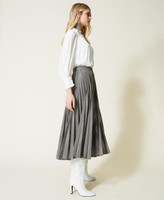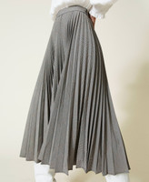Gonna lunga in misto viscosa stretch plissé tinto filo a motivo Principe di Galles, sfoderata.