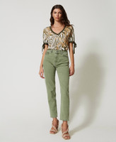 Jeans regular collezione Actitude in denim color, passanti in vita, cinque tasche, zip e bottone a chiodo, rivetti personalizzati.