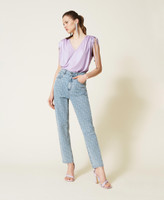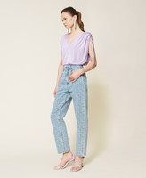 Jeans regular collezione Actitude in jacquard con logo all over, passanti in vita, cinque tasche, logo impunturato sul retro.