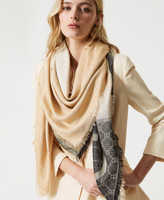 Kefiah in viscosa jacquard con logo Oval T all over e profili sfrangiati.