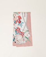 Kefiah in viscosa con stampa a fantasia floreale e logo lettering piazzato.