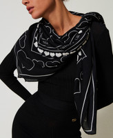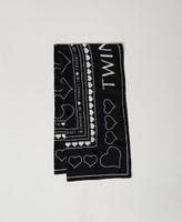 Kefiah in modal con stampa a cuori e logo a contrasto.