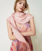 Kefiah in viscosa jacquard con logo Oval T all over e profili sfrangiati.