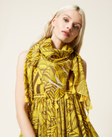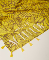 Kefiah collezione Actitude in cotone stampato con nappine di viscosa applicate agli angoli.