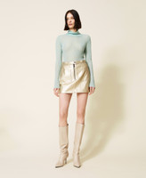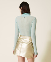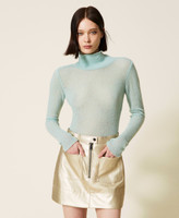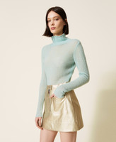 Maglia lupetto collezione Actitude in lana stretch bouclé lavorata a punto rasato con linea fitted.