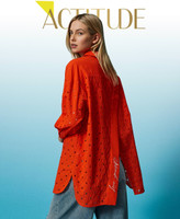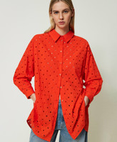 Alleata dei look on e off duty. Camicia in sangallo con inserti in popeline, maniche lunghe, chiusura con bottoni sul davanti e ricamo a contrasto sul retro. Per outfit stand-out.