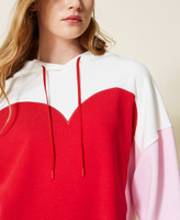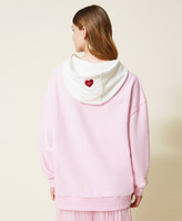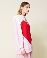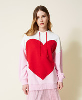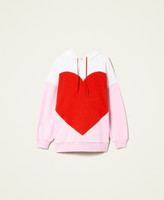 Maxi felpa bicolore con cuore a intarsio, collo con cappuccio, maniche lunghe con spalle scese. Questa felpa fa parte della capsule in esclusiva online Iconic Love.