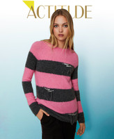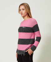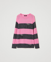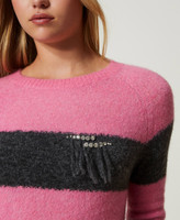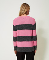 Maxi maglia a righe collezione Actitude in misto lana e mohair con fit morbido, girocollo, frange e castoni cuciti a mano.