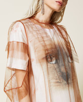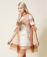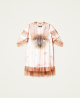 Maxi T-shirt collezione Actitude con stampa effetto batik abbinata ad abito corto in tulle con balze.