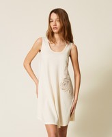 Maxi top in jersey di cotone con applicazione in trasparenza di ricamo floreale crochet. Ha scollo ampio tondo, profili rifiniti, logo a cuore in metallo sul retro, linea morbida.