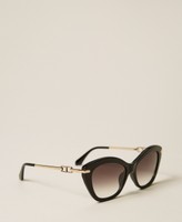 Occhiali da sole a farfalla in acetato con stanghette in metallo smaltato con logo. Lunghezza lente: 55mm Lunghezza aste: 140mm Ponte: 17mm