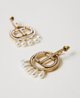 Orecchini pendenti con logo Oval T con strass, fondo con fila di perle, anello e chiusura con perno.