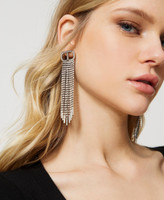 Orecchini con logo Oval T e frange di strass crystal, chiusura a perno.