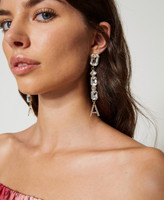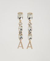Orecchini pendenti collezione Actitude con castoni crystal, logo con strass, chiusura a perno, galvanica color oro.