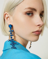 Shimmering touch. Orecchini pendenti con castoni strass in vetro, galvanica color ottone, chiusura a perno. Per aggiungere attitudine a ogni outfit.