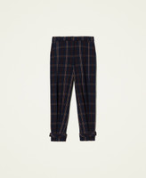 Pantaloni jacquard tinto filo a disegno check, collezione Actitude, dalla linea morbida, con tasche alla francese, alamaro al fondo.
