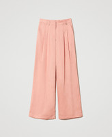 Pantaloni a palazzo in TENCEL(TM) tinto collezione Actitude con pieghe davanti, zip e gancio a uomo, tasche al fianco.