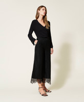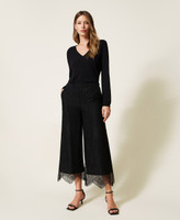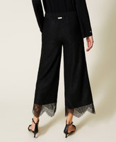 Pantaloni cropped in pizzo rébrodé con tasche ai fianchi, fodera in crêpe de Chine, smerli al fondo.