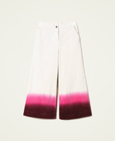 Pantaloni ampi cropped in velluto di cotone stretch a costine, tinti tie-dye sfumati, zip e bottone.