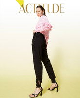 Pantaloni joggers collezione Actitude in punto Milano con maxi coulisse al fianco, fondi a costine.