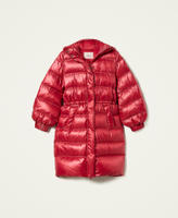 Piumino lungo in tessuto tecnico ultraleggero con trapunta orizzontale, imbottito in vera piuma.