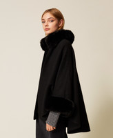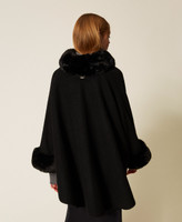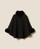 Poncho in panno con collo e polsi in pelliccia sintetica. Ha chiusura con gancio al collo e maniche lunghe.