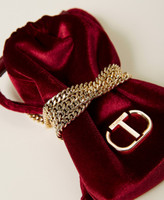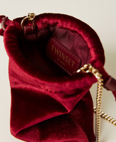 Portacellulare in velluto con coulisse e arricciatura, tracolla in catena, logo Oval T color oro.