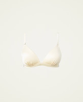 Reggiseno a triangolo imbottito con coppe non estraibili, arricciatura davanti, fianchi con strass applicati e logo.
