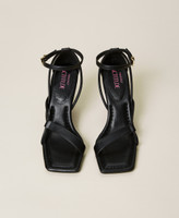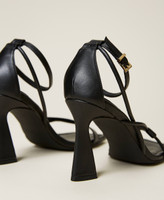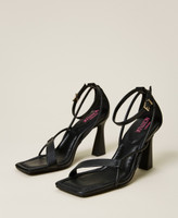 Sandali collezione Actitude con piccoli listini e cinturino alla caviglia, tacco svasato, fondo in tunit.