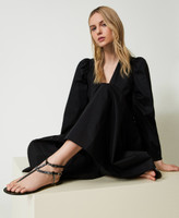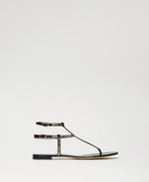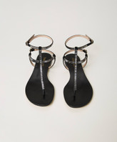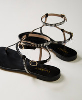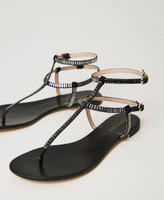 Sandali flat infradito con full strass, doppio cinturino alla caviglia e fondo in tunit.