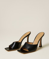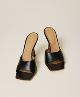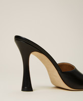 Sandali mules in nappa con tacco fasciato in pelle e fondo in cuoio.