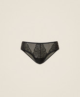 Slip in tulle ricamato a motivo floreale con paillettes, retro in tulle liscio con placchetta logo Oval T in metallo.