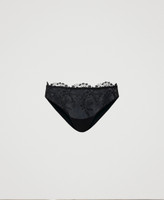 Slip in tulle con ricamo macramè davanti, smerlo in vita, retro in microfibra con logo al centro.