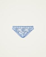 Slip in tulle con pizzo ricamato davanti, retro in tulle unito con fiocchetto in organza. Da indossare con il reggiseno coordinato per un dessous che non teme confronti.