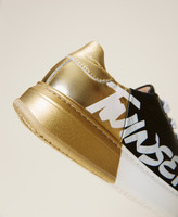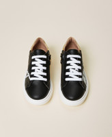 Sneakers in pelle di vitello e laminata con logo serigrafato e zip laterale interna.