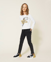 Aggiungi carattere agli outfit della tua piccola con queste sneakers bicolore da bambina realizzate in pelle di vitello e pelle laminata. Sono personalizzate dalla serigrafia del logo a contrasto e hanno la zip laterale interna. La calzatura perfetta da indossare a scuola ma anche per rendere unici i look delle occasioni speciali.