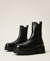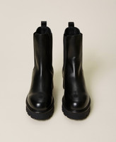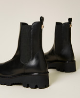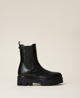 Stivaletti chelsea in pelle con dettaglio borchia sul retro, elastici ai fianchi, fondo chunky in gomma.