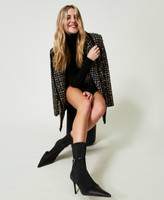 Effetto inaspettato per gli stivaletti modello stretch booties effetto pelle con calzino in tessuto, punta sfilata, cinturino alla caviglia, tacco a stiletto e fondo in tunit. Sono personalizzate dal pendente con logo. Tocco stand-out per ogni outfit.