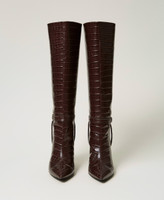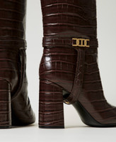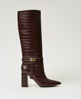 Stivali alti con stampa cocco, staffa con logo Oval T, punta sfilata, tacco ricoperto, fondo in gomma.