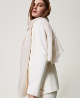 Stola jacquard con lurex, fantasia Oval T all over in contrasto colore e fondi sfrangiati.