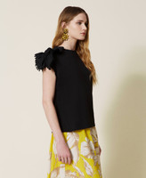 T-shirt con intarsi di macramè e pompon
