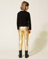 Logo gioiello per personalizzare tutti i look della tua piccola. Scegli la T-shirt da bambina in jersey di cotone stretch con Oval T in strass e borchie termoadesive, collo tondo e maniche lunghe. Perfetta anche per un’occasione speciale e come idea regalo.