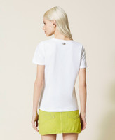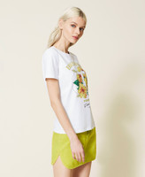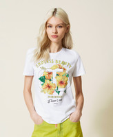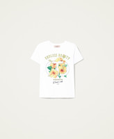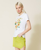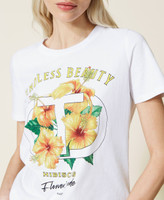 T-shirt con stampa ibisco e strass