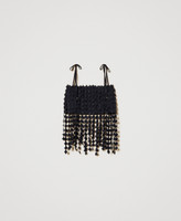 TopTop cropped crochet a motivo rombi con fodera in crêpe de Chine, spalline in tessuto da annodare sulle spalle, logo a cuore in metallo sul retro, linea fitted.