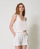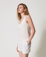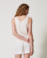 TopTop in raso di viscosa con scollatura profonda, spalline ampie, placchetta logo Oval T sul retro, linea dritta.