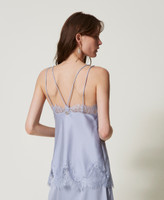 Top lungo in raso e pizzo
