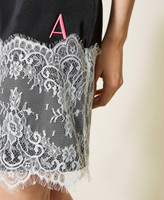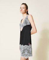 Abito corto sottoveste collezione Actitude in twill e pizzo a contrasto, inserto in trasparenza, zip al fianco.